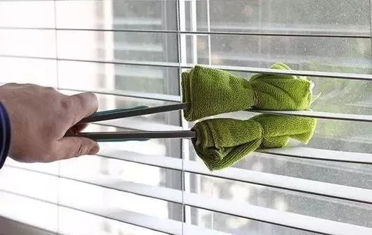 百叶帘的叶片上最容易积灰尘,需要定期清洁才好。在这里不妨试试“懒人清洁法”。把湿抹布缠在铁夹上,蘸取少量清洁液,夹住叶片来回抹一遍,就能轻松除尘啦~