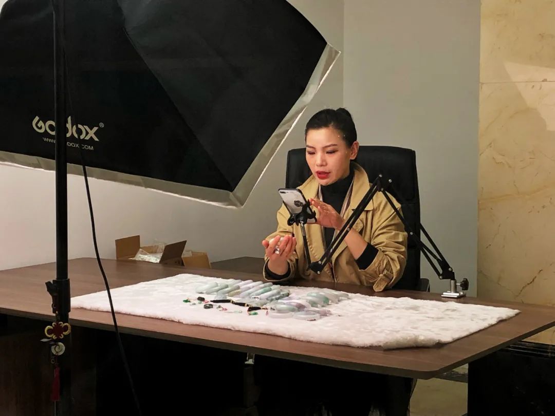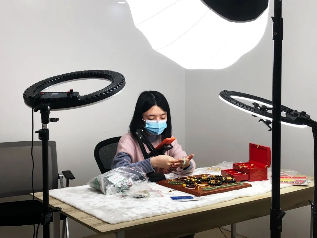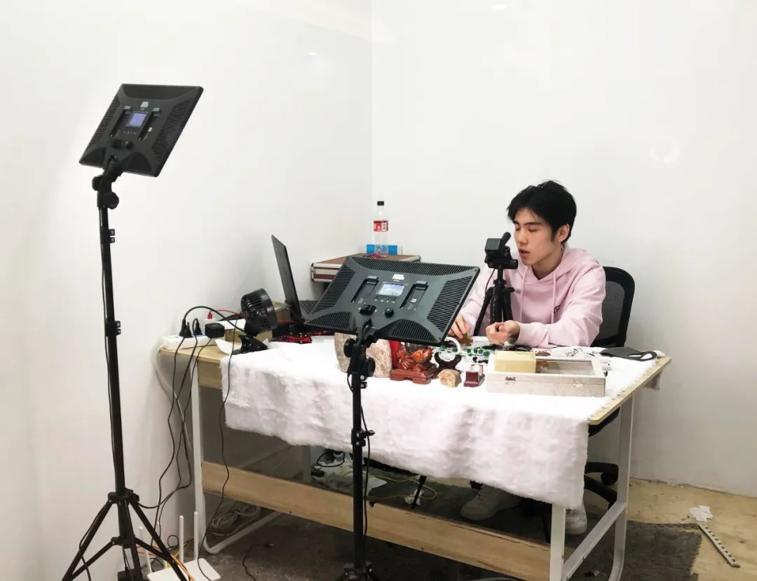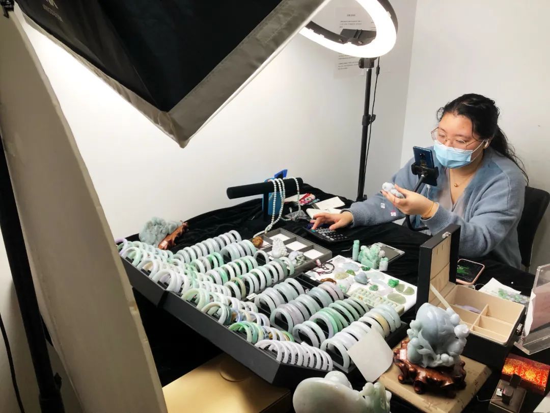 中欧街运营及直播基地运营总负责人张冠栋在管理工作之余,也喜欢亲自上阵,体验一下“带货”的乐趣。张冠栋对玉石同样非常精通,在他的直播中,灯光、角度、摄影机的摆放位置都很有讲究,“直播看似很简单,实则非常考验一个人的单兵作战能力。”
