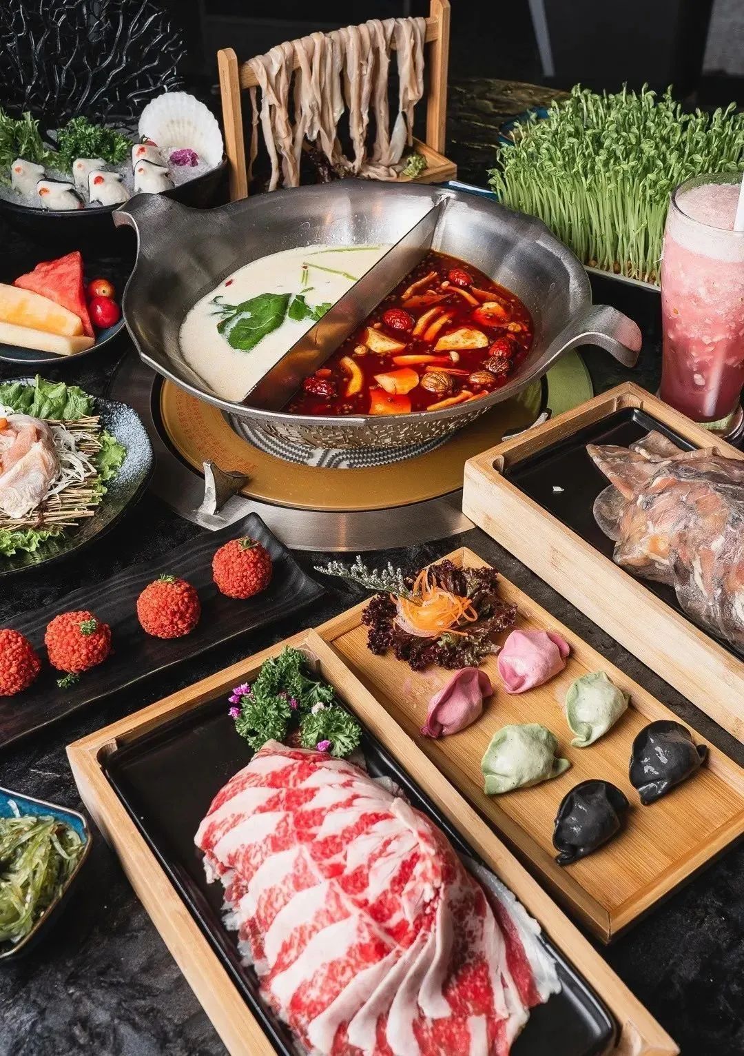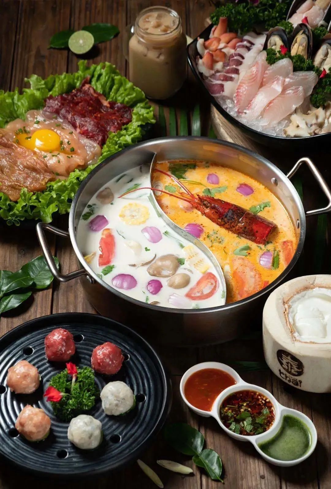 招牌龙虾冬阴功锅,独有天然香料黄金配比,加入新鲜进口大颗波士顿龙虾头,汤底酸辣鲜甜,三重口感,回味无穷。椰奶鸡汤锅以骨汤基底新鲜香料熬煮,浓郁椰浆的香味与新鲜鸡块的融合,香甜椰香瞬穿东南亚。