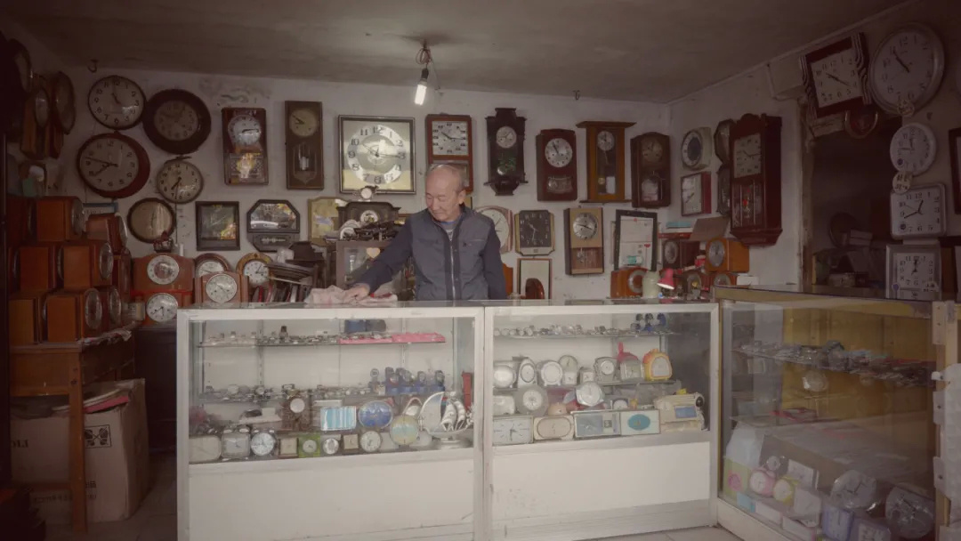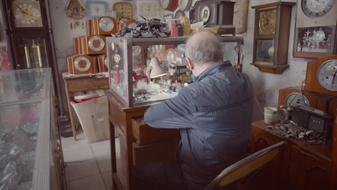 那不再崭新的店铺,接待了一批又一批的顾客。赵师傅把最美好的年华都留在了这“麻雀”修表铺里,留在了那斑驳的桌面上,那陈旧的椅子上…