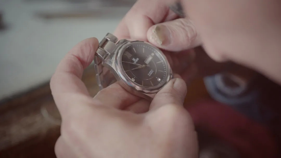 赵师傅是个很健谈的人,但当他坐在修表台前,他的话就少了……一手捏着手表的机芯,一手拿着工具,轻轻夹起一个个极为精细的配件,所有动作都是那么的小心翼翼。当他将修好的手表拿给顾客时,总会自信地说出,“弄好了,不会有问题的,有问题我还在这呢!”