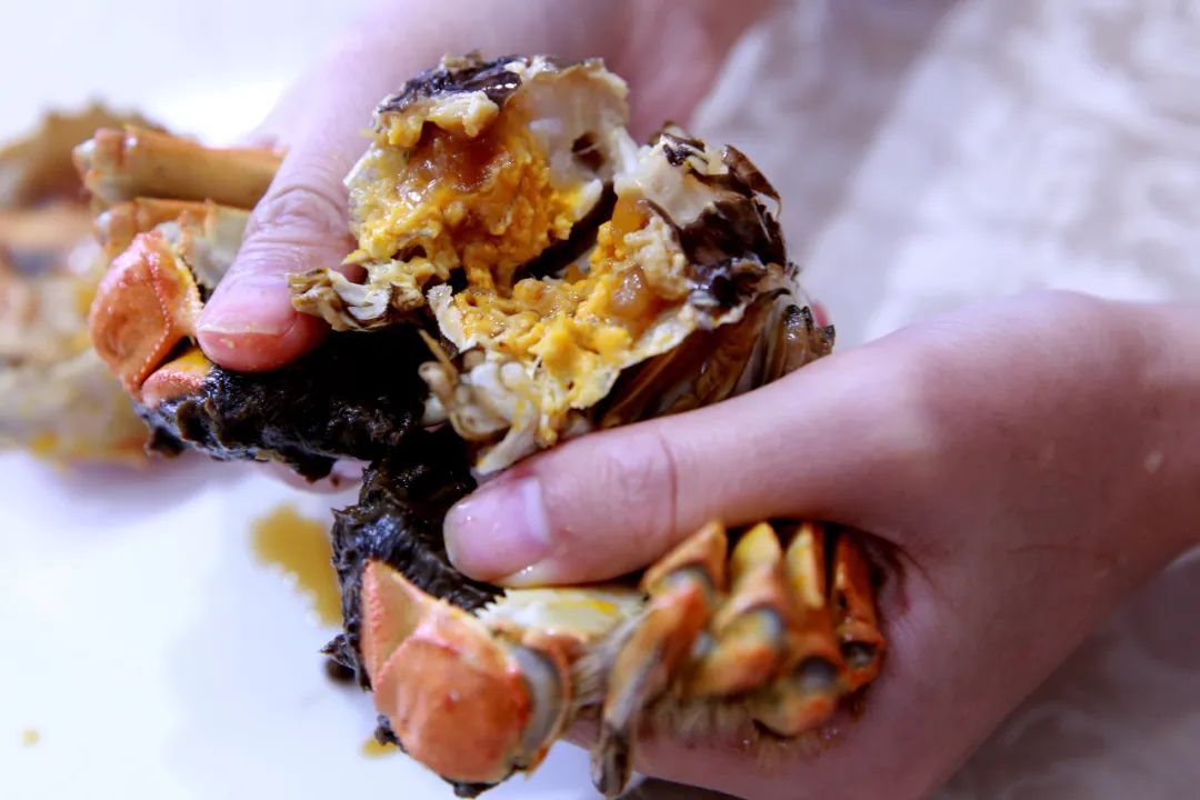先隔水蒸熟,然后将自然凉透的大闸蟹完全浸泡在秘制醉卤中,一段时间后,就可以尝到极具风味的熟醉蟹了。剥开蟹壳,黄肥膏厚、香醇鲜甜、馥郁芬芳、唇齿留香。