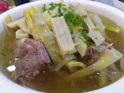 用鞭笋小火慢炖老鹅,能吸收鹅肉中的油脂,汤清味浓、鲜美可口,无论喝汤还是吃肉,都让人欲罢不能。
