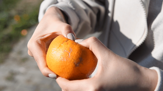 摘下一个橘子,剥开黄澄澄的皮