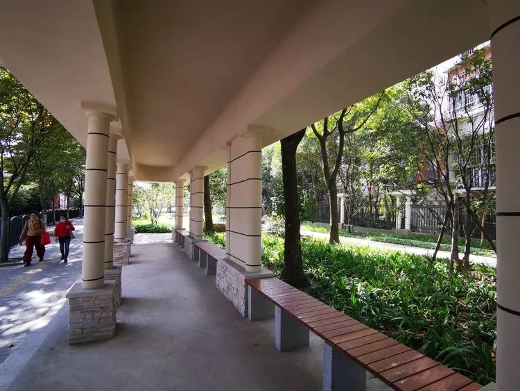 为满足附近小区居民不同的需求,绿地内设置了不同的活动空间,并同时辅以观赏类花镜植物。此外,绿地还对原有长廊进行了修缮处理,新设了步道,通过景墙、坐凳等小品设置增加空间的趣味性。对绿地内郁闭度高的绿化,也进行了梳理和调整,新增四化植物品种,打造特色观花休闲绿地。