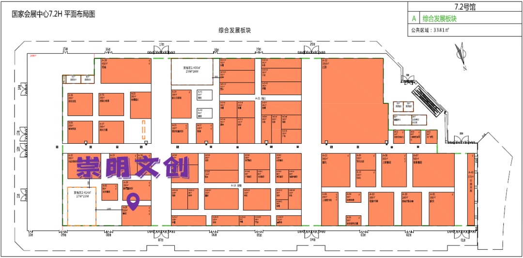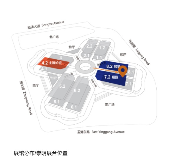 崇明区展台位于国家会展中心(上海市青浦区崧泽大道333号)7.2馆(近07号门),7.2H参观主通道入口A-28展位,210平米展区充分展示崇明世界级生态文创产业的勃勃生机。