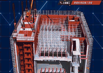 据介绍,为确保上海三菱厂区内正常的生产和运转,同时克服单层层高过高施工难度大以及场地狭小和工期紧的问题,施工方采用了液压爬升钢平台体系和附着式升降脚手架体系。实际施工过程中,核心筒标准层可以达到7天一层,确保了工程顺利有序进行。