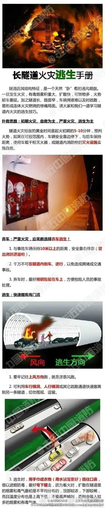 隧道发生火灾要牢记: