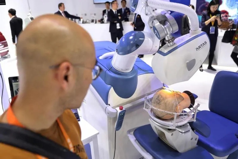 一款植发手术辅助机器人亮相进博会(视觉中国)