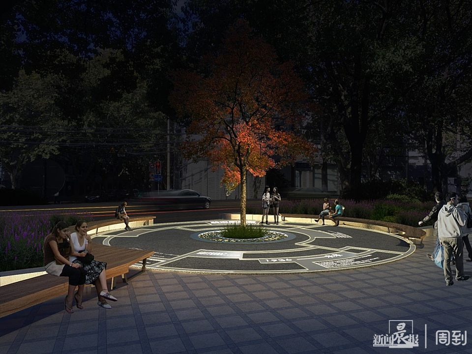 在复兴中路茂名南路街角,将会打造一个以“复兴路年轮”为主题的街边游园,结合所属区域的历史沿革等文化信息,以景观文化地刻为点缀,传达道路引导等信息。