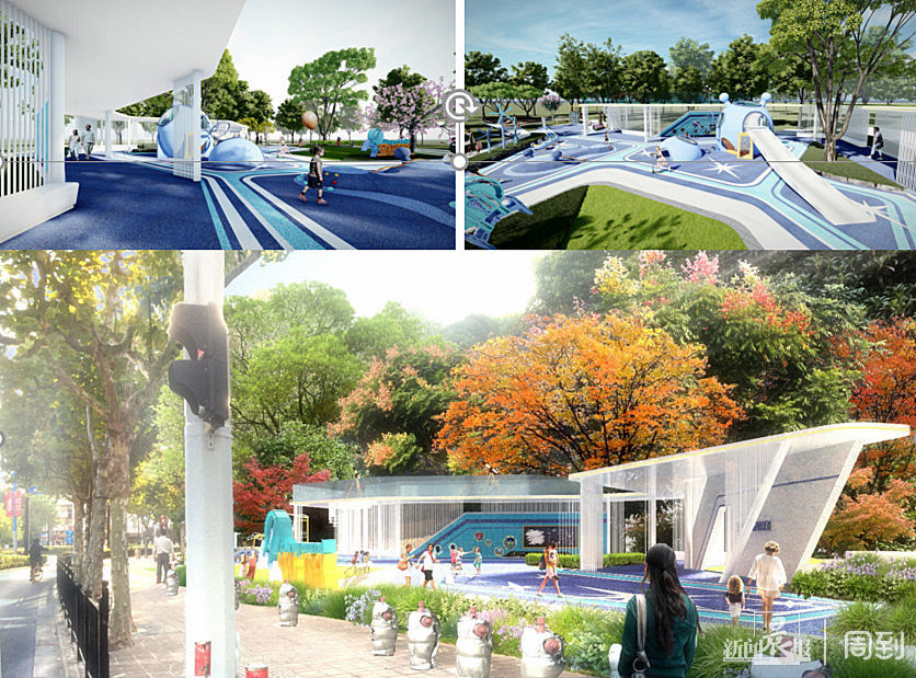隧道科技馆隔壁的市八初级中学门口是青少年的聚集地,附近还有幼儿园。目前,这里只有一条园路和比较普通的绿化。根据方案,这里将被打造成孩子们的未来花园,以未来科幻为主题,增加场地内的休憩、游玩空间,作为孩子们的特色主题游玩场地。