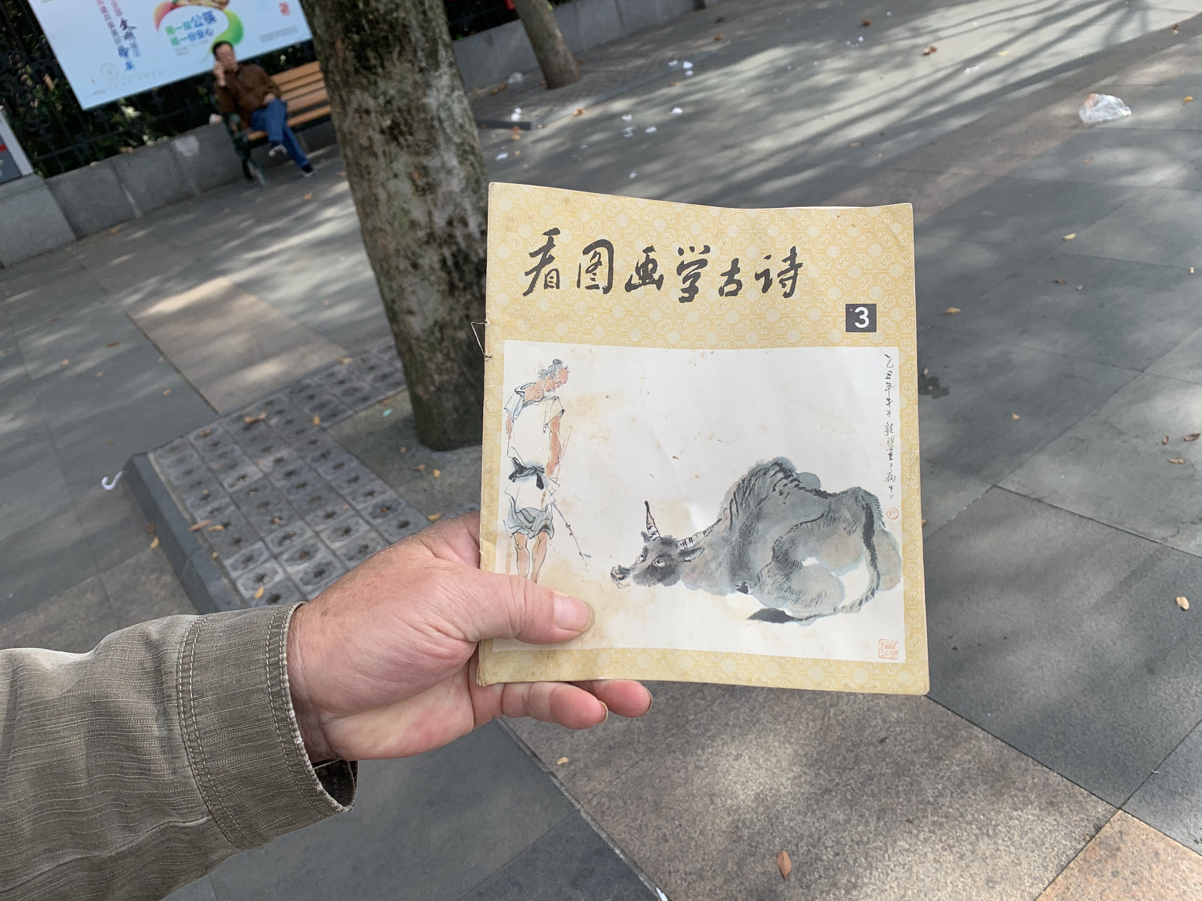 “遥望洞庭山水翠,白银盘里一青螺。”杨国钿一边翻阅孙女的古诗书,一边将诗句写成地书,吸引了不少过往行人驻足欣赏。