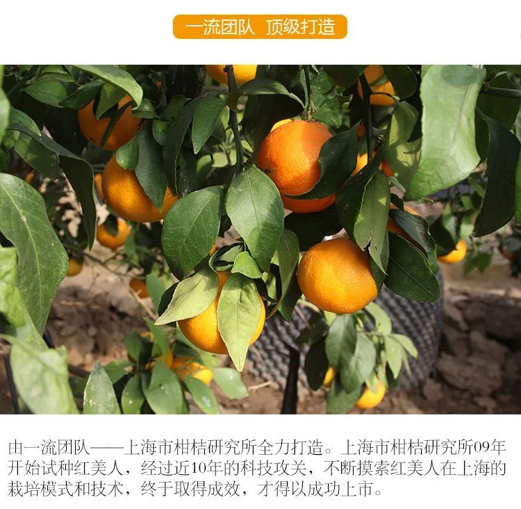“红美人”柑橘被称为柑橘中的“爱马仕”,原产于日本,登记名为爱媛果试第28号,简称爱媛28。成熟期在11月下旬,12月上旬完全成熟。入口即化,柔软无渣是“红美人”最大的品质特点,中心糖度可达16~18度,几乎所有第一次尝到“红美人”的人都会有“惊艳”的感觉。