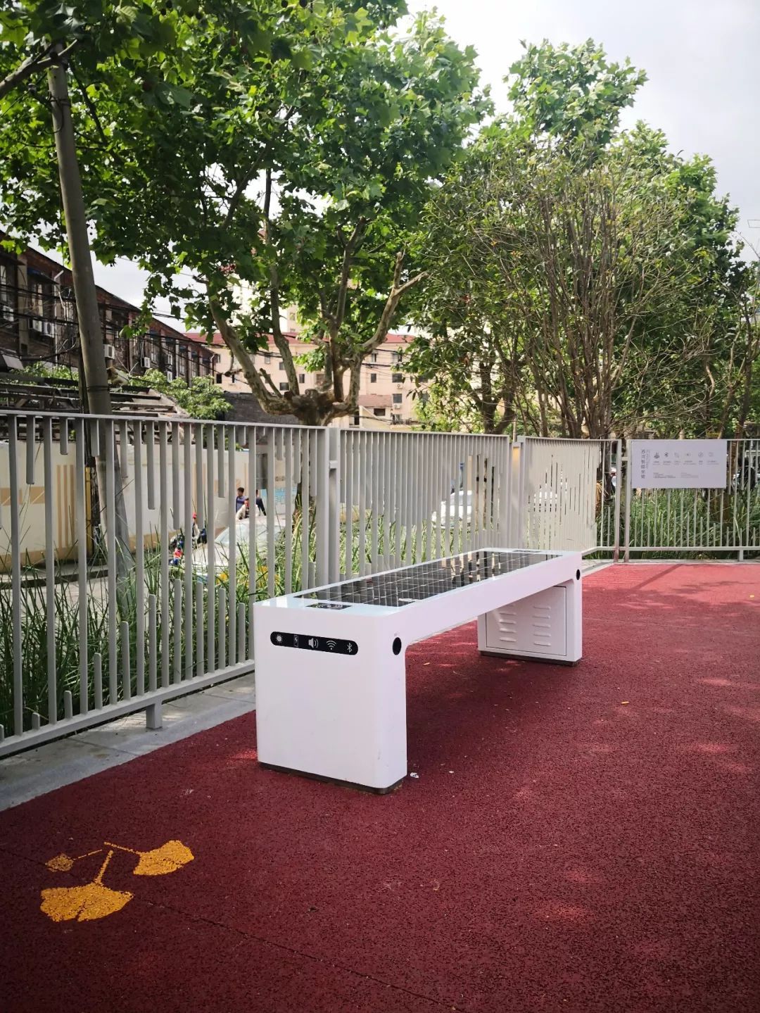在苏州河长宁东段,还有网红黑科技——“智能坐凳”,可以将手机通过蓝牙与坐凳连接,在休息之时享受一段美妙的音乐时光。