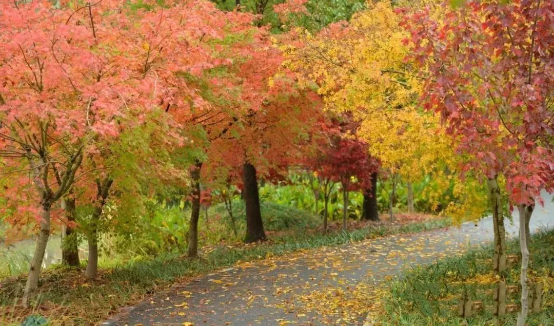 密枝卫矛、美国红枫、无患子、鸡爪槭、乌桕...绚烂的秋花与红叶并存,秋风拂过,叶片微动,随风飞舞的绚丽秋色,让人目不暇接,流连忘返。
