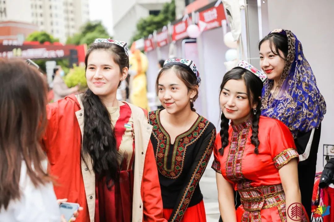 活动现场,国际学生身着精美的传统服饰,神采奕奕,载歌载舞。