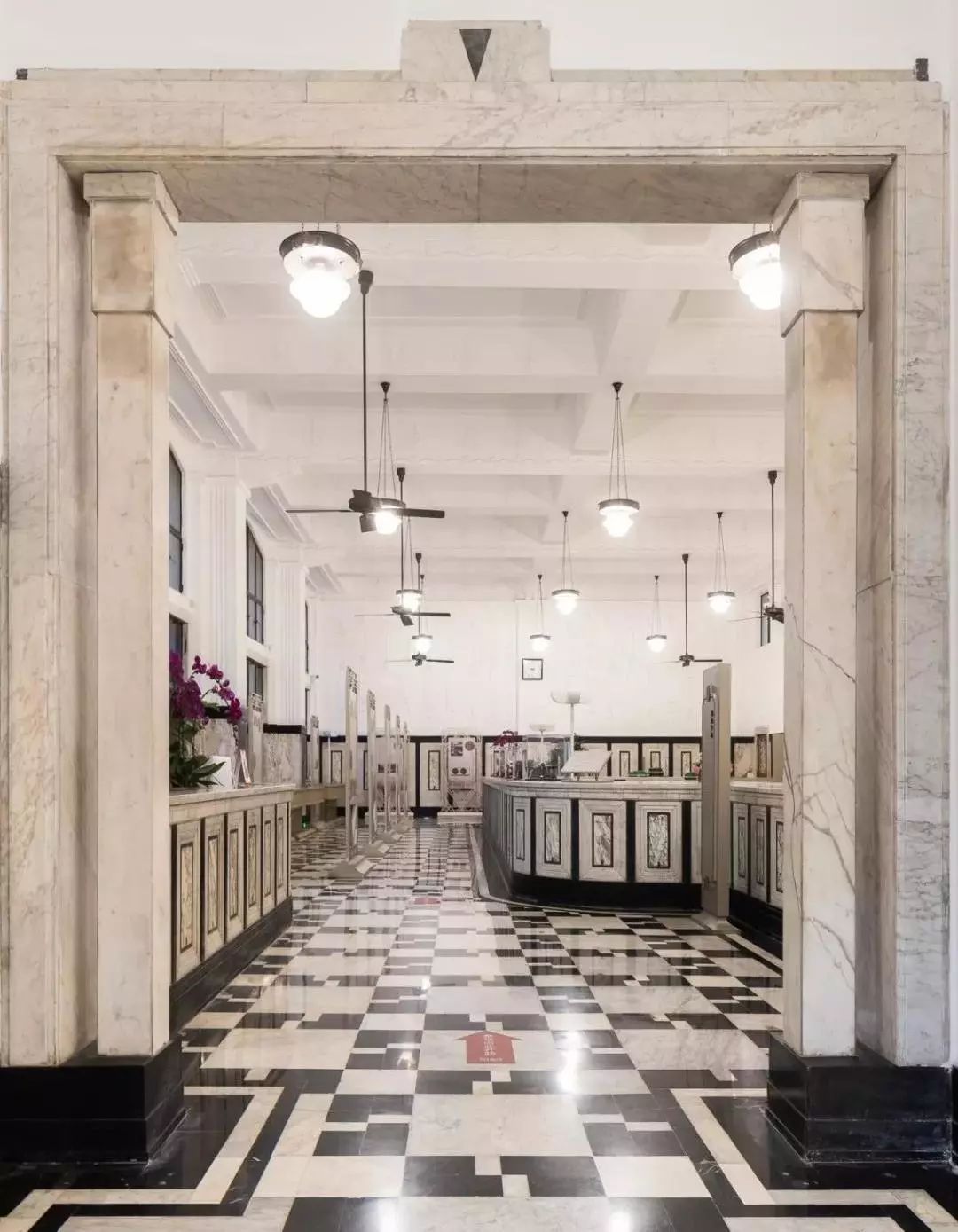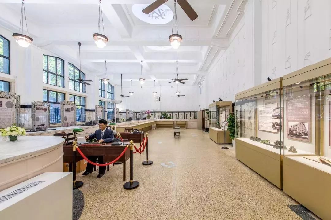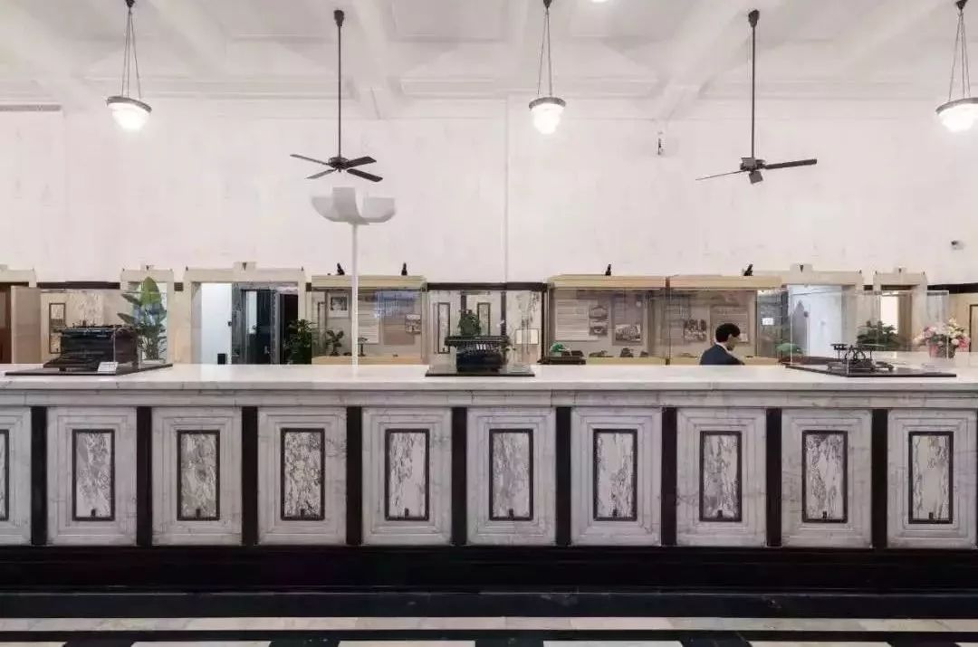 原银行柜台使用长达24米的黑白大理石拼花,在当时轰动一时,现在成为了展览馆的接待空间。