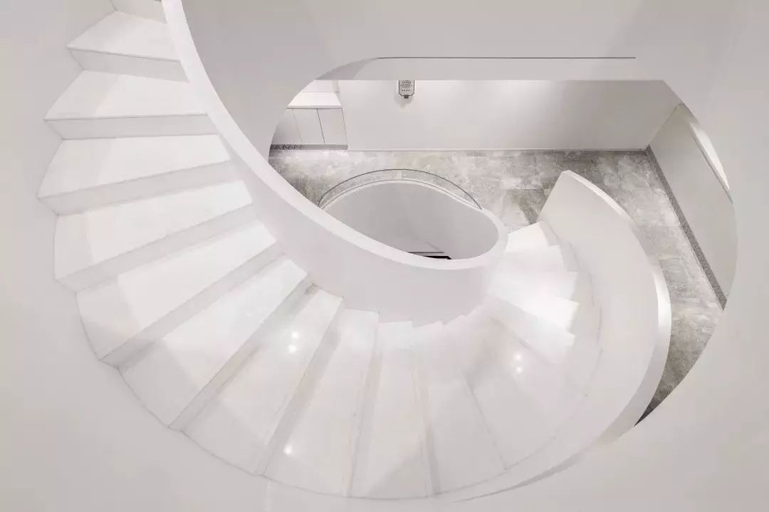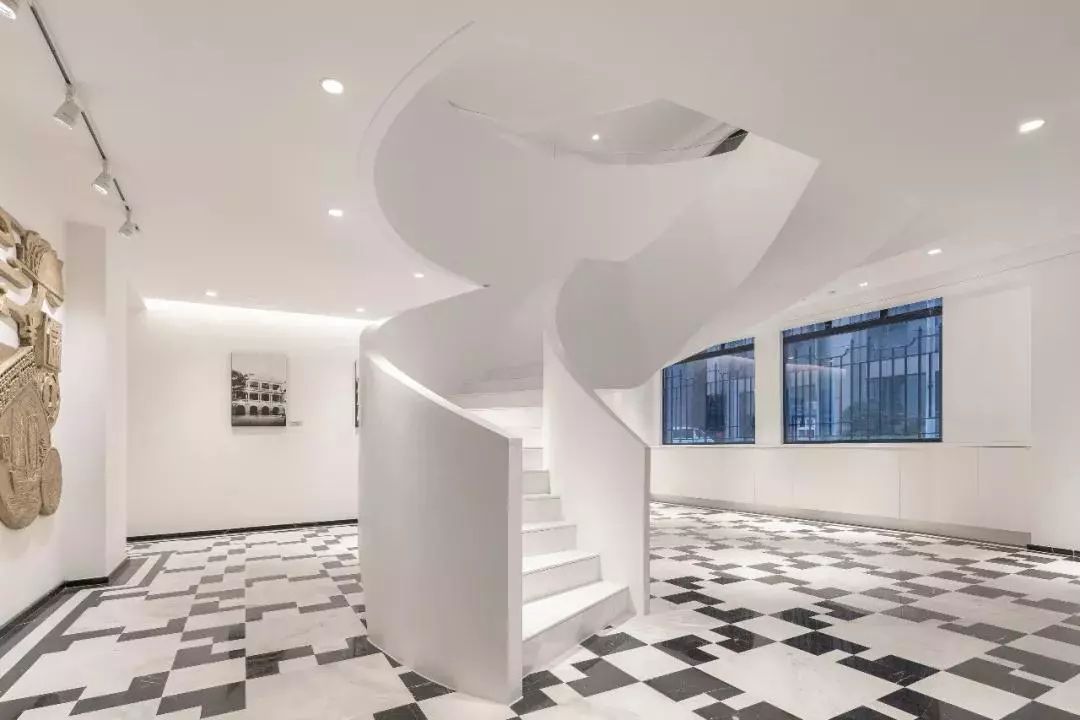 原本门厅后备空间的狭窄木质楼梯现在改造成了直通二层的旋转楼梯,是整个展览馆里最具艺术气质的地方~