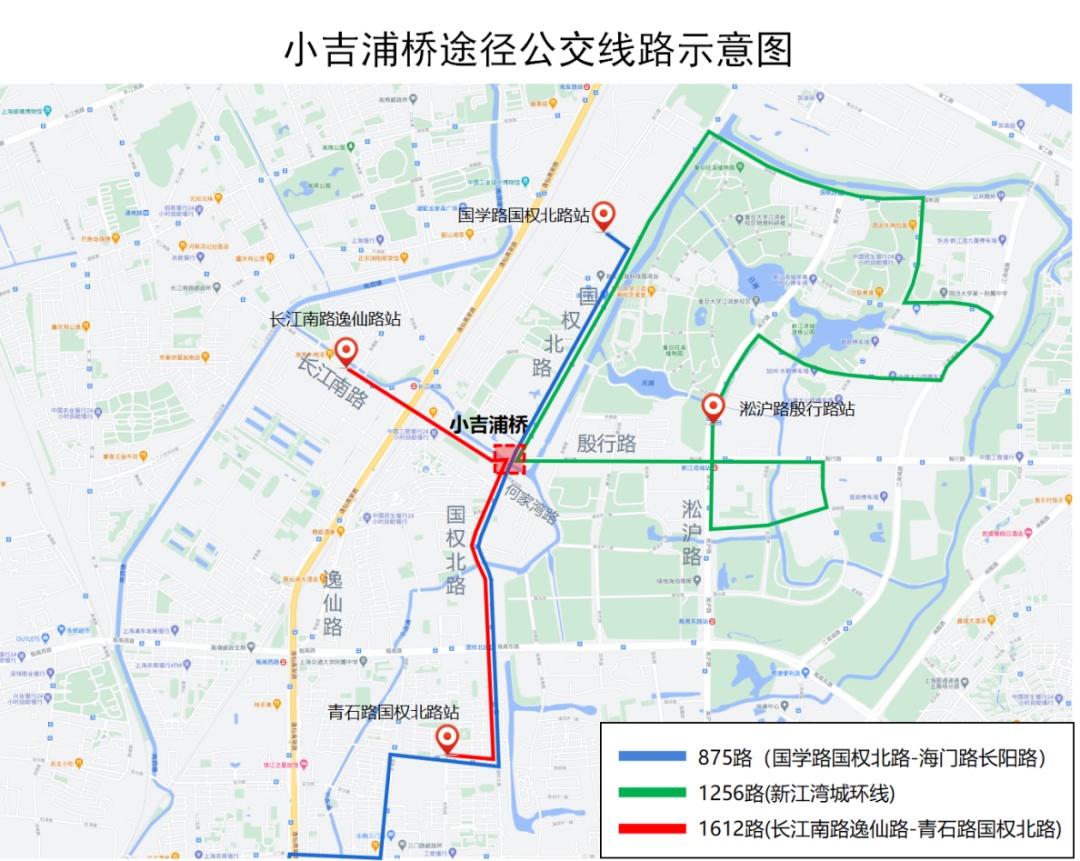工程建设之前,从杨浦区新江湾城经殷行路到宝山区高境镇,需借道桥宽仅10米,限载10吨的国权北路临时钢便桥,再从国权北路转到何家湾路,异形路口难以通行,且临时桥存在安全隐患。区区对接殷行路、殷高东路辟通后,杨浦宝山两区交界的人车互通更加繁忙,整个区域的交通组织矛盾在小吉浦桥凸显。