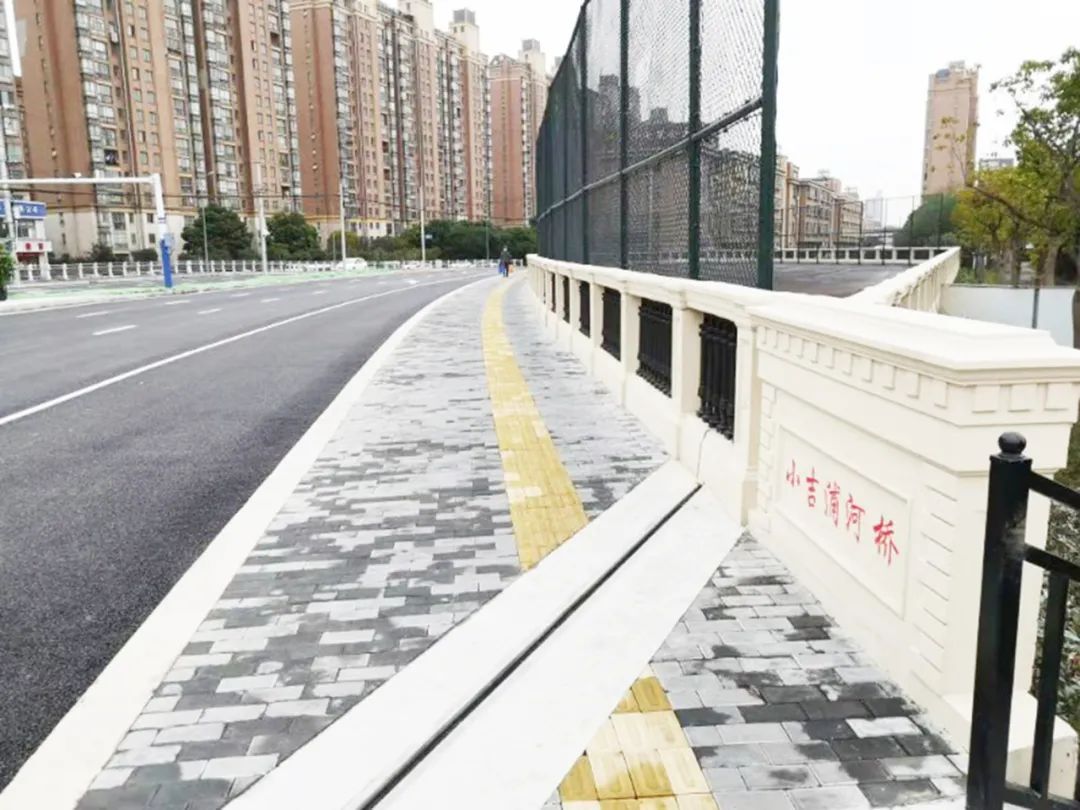 改建工程拆除了原本的临时钢便桥,重新修建了沿河道方向的,长约200米,双向6-8车道的小吉浦桥,不仅接顺了异形交叉口,也让机动车、非机动车和行人各行其道,保障了出行安全。