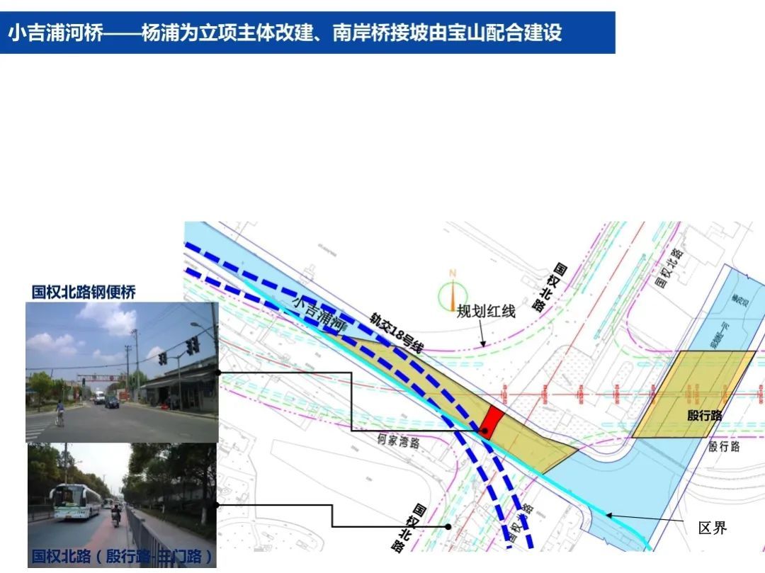 自新一轮本市区区对接道路实施计划启动以来,市交通委牵头杨浦和宝山两区开展多轮区区对接研究,将国权北路小吉浦桥改建工程纳入市级计划,给予专项资金支持,并持续指导方案优化,有力推动了工程的落地。市交通建设工程管理中心定期到现场召开工程例会,指导杨浦、宝山两区施工衔接、难点问题协调等。