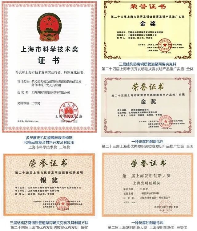 上海海隆赛能新材料有限公司成立于2003年,与它同属海龙集团的海隆石油化工研究所致力于石油专用管涂料、输送管线涂料、船舶涂料、工业防护涂料、油田化学品的研究,是国内唯一一家自主研发出优质的石油专用管内外特种防腐涂料的专业研究所。公司先后被评为上海市高新技术企业、上海市科技小巨人企业、上海市专精特新企业,有多项产品被评定为上海市高新技术成果转化项目和国家重点新产品,是国内涂料领域获得国家发明专利最多的单位之一。