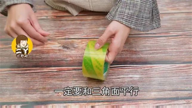 这里要注意的是,一定要和三角面平行,然后快速一拉,胶带就能轻松断开啦!
