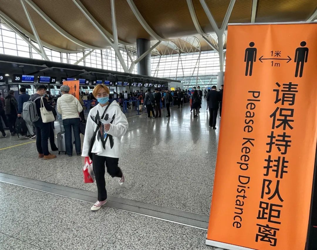 搭乘下午3时9C8869航班前往哈尔滨的大学生旅客袁春朋早早地到机场等候,“我知道近期上海确诊新冠的病例只是与货运区域有关,跟客运区域无关,所以还是很放心的。一路走,也发现上海和长三角对于疫情防控很严格,比如我戴口罩露出鼻子,就马上有人上前提醒。”