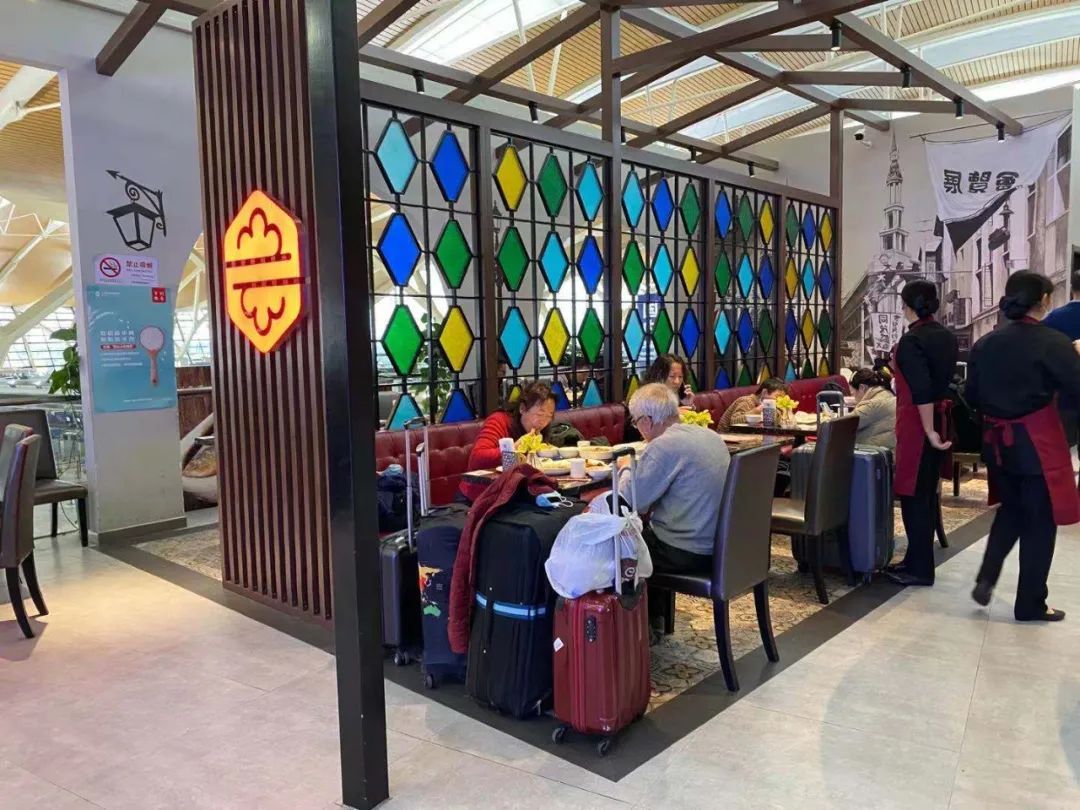 记者在现场看到,旅客从容有序候机,餐饮店铺正常营业。旅客们排队办票或在休息区域就坐时,都自觉戴好口罩,留出一定社交距离,时不时还有保洁人员在候机楼内进行消毒工作。
