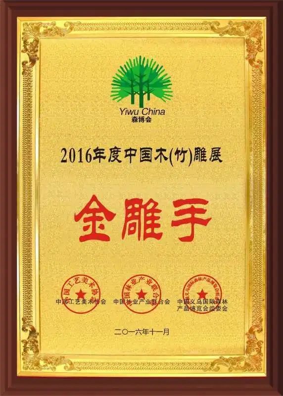 2016年,《八仙过海》作品荣获森博会第六届中国木竹随展金奖;