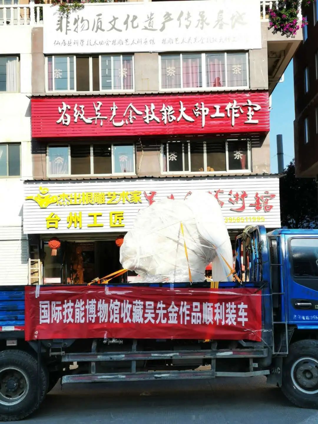 10月10日下午,三件宏大的根雕作品装了一卡车,从浙江仙居的“省级吴先金技能大师工作室”出发,前往位于上海的世界技能博物馆。