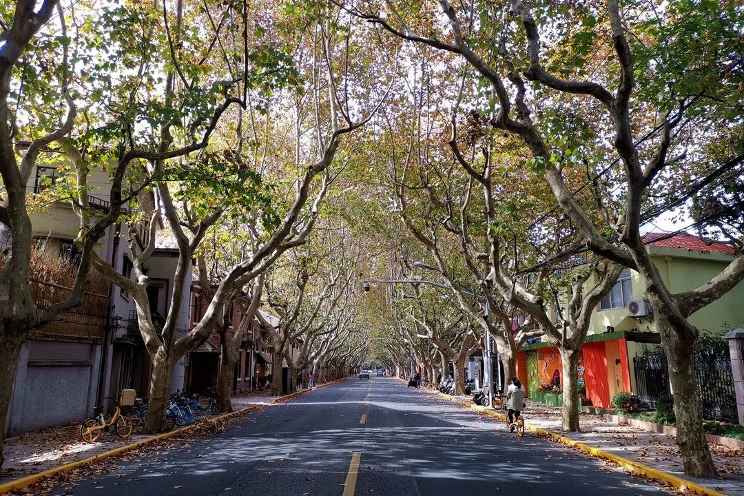 从历史名街武康路到永福路的复兴西路段都属于悬铃木林荫道。