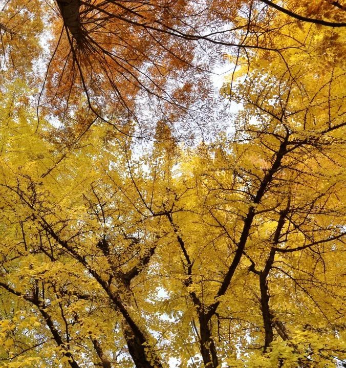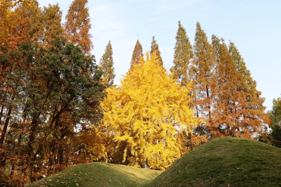 这株120年的古银杏位于光启公园内的徐光启墓北侧,银杏和两旁的水杉组合在一起,形成绝美的秋色。