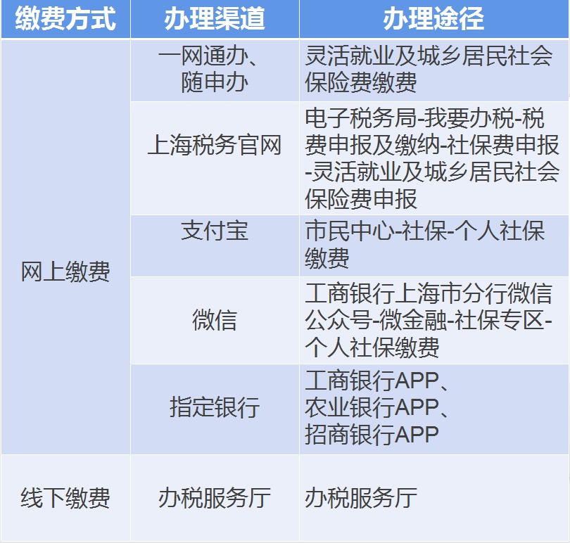 缴费方式一览表
