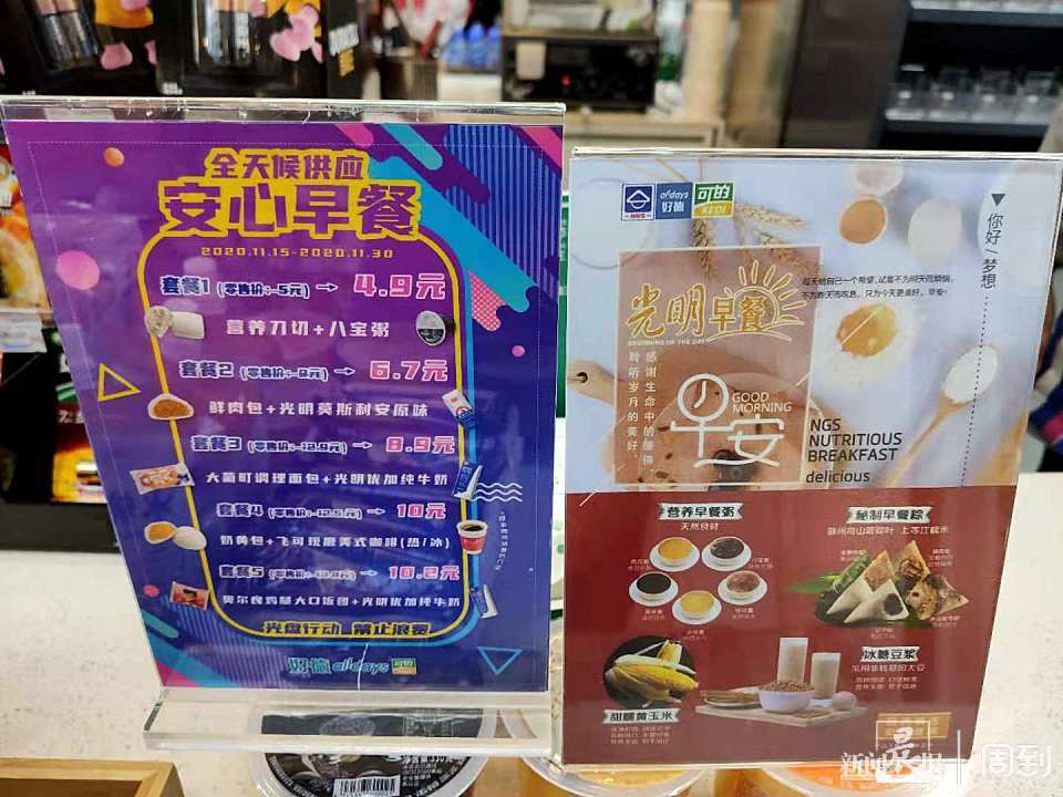 “在早餐工程推广以前,我们的便利店里也有售卖早餐,但花样没有现在这么多。” 好德便利区域经理说。为了配合早餐工程的开展,公司每天都有安心早餐套餐,其中包括多个套餐组合,中式西式皆有。考虑到市民对早餐价格的不同需求,每档安心早餐套餐里都会有一套总价低于5元的套餐,比如这段时间里售卖的“刀切馒头+八宝粥”套餐,总价仅4.9元。