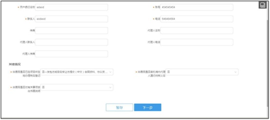 填写完毕,点击【暂存】按钮,保存本次已填写的内容。点击【下一步】按钮,提交当前数据并继续办理。(如仅保存未提交,则下次进入该表单时,前次保存内容可选择回显自动带出,无需再次输入)