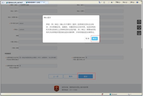 2.预览表单,点击【提交】。(如有问题则可点击【上一步】返回修改)