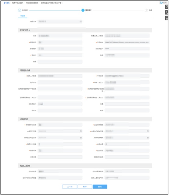 页面信息分为:扣缴义务人、非居民企业、合同信息、经办人信息4块。