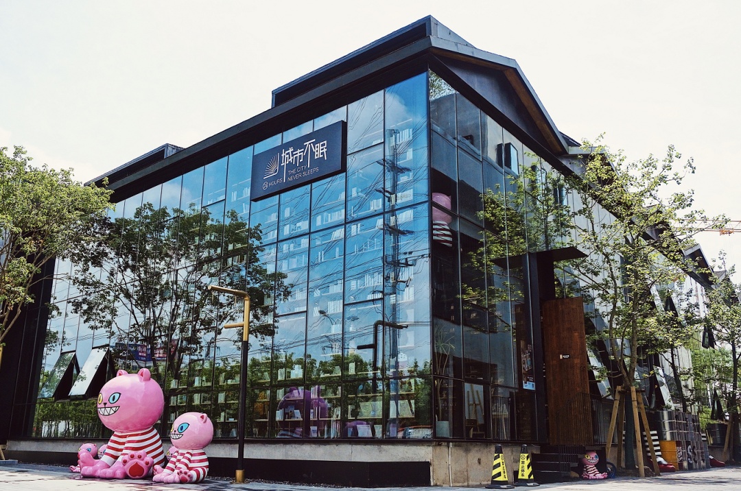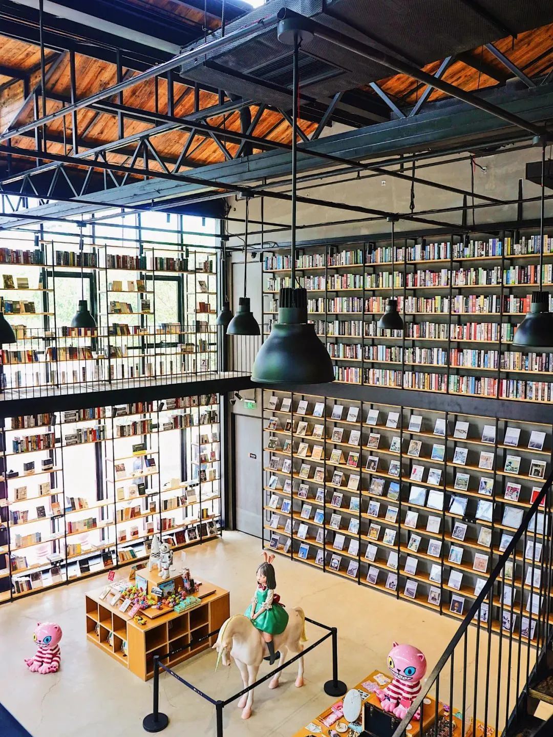 城市不眠书店远离城市喧嚣,藏身于漂亮的玻璃房子内,静谧低调。老厂房工业风的设计十分抓人眼球,loft两层挑高结构有着满满的神秘感,一整面书墙带来强烈的视觉冲击。