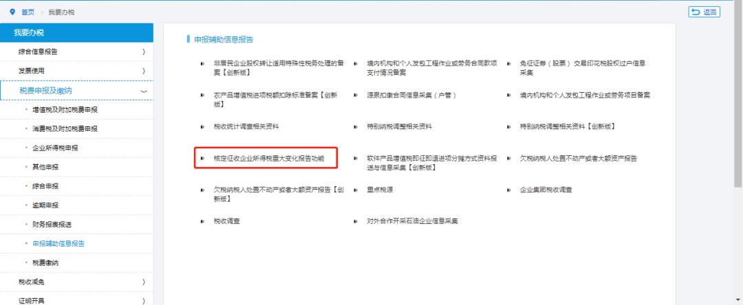 电子税务局——我要办税——税费申报及缴纳——申报辅助信息报告——核定征收企业所得税重大变化报告