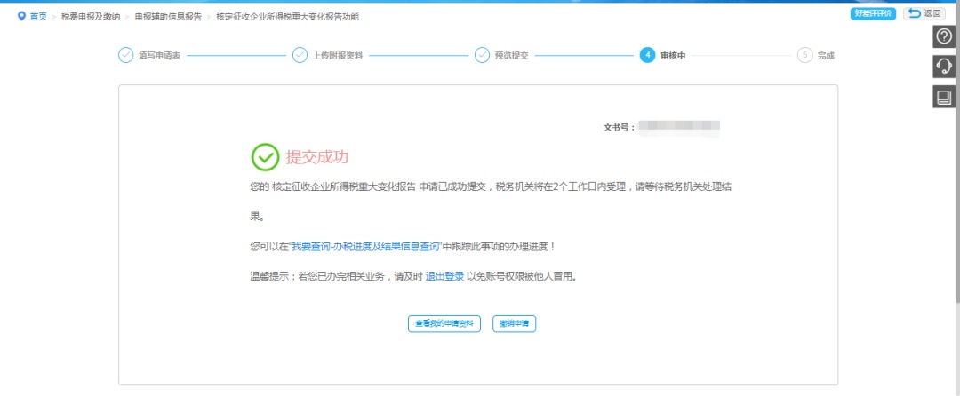 验证通过,跳转“审核中”页面,等待税务人员审核。