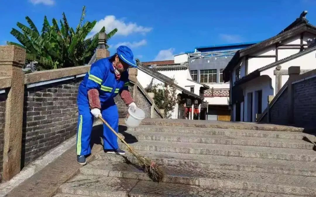 为了适应罗店古镇景区亭廊流水,弯婉曲折的保洁特点,一线环卫职工们用自制小扫帚配合立体保洁和机具冲洗,让古镇石皮街变得更干净,得到居民和游客一致好评。