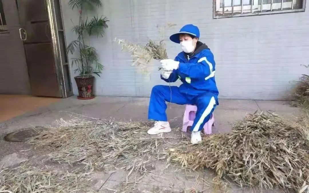 宝山环卫作业公司贯彻“变废为宝,绿色作业”理念,一线环卫职工们定期将清扫后废弃扫帚上可用部分拆下,包括铁丝,扫帚柄,竹枝,经过紧密捆扎、平整底面,自制出一把把新扫帚,更加美观、结实、耐用。