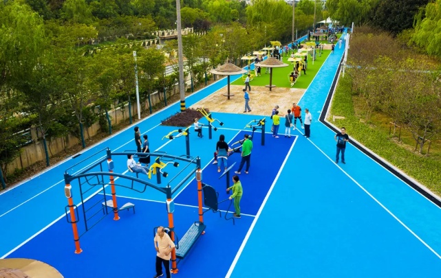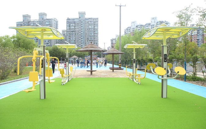 中间区域针对不同年龄段人群划分设置了儿童娱乐及足球训练区 、青年不锈钢运动区、 综合人群负重力量练习区、传统器械健身区、智能健身驿站以及羽毛球场六大活动区域,能够满足市民游客的多元化健身需求。