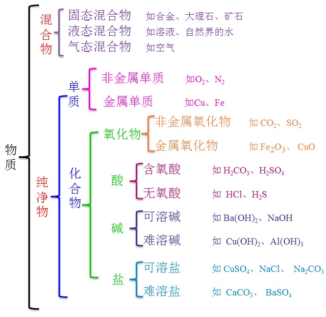 在初中阶段要求对物质有一定的认识,能够分辨出所给出的物质属于哪一类物质。