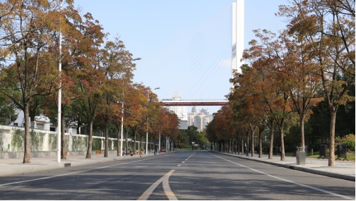 道路以行道树重阳木为主题特色,辅以立体绿化安吉拉月季花墙,结合黄浦滨江绿道周边绿化,丰富的春夏秋观花、秋季观叶绿化特色景观,秋色明显。最佳观赏期为4~5月和10~12月。