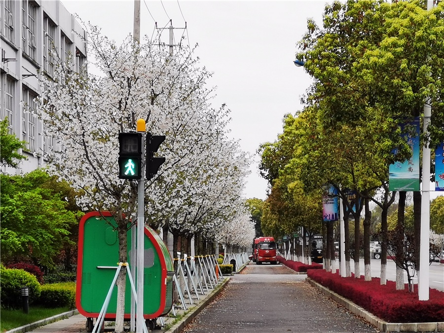 道路以染井吉野樱为主,辅以加拿大紫荆、高杆月季、茶梅、红花檵木等花灌木,形成春夏秋三季观花的道路绿化特色景观。最佳观赏期为3月。
