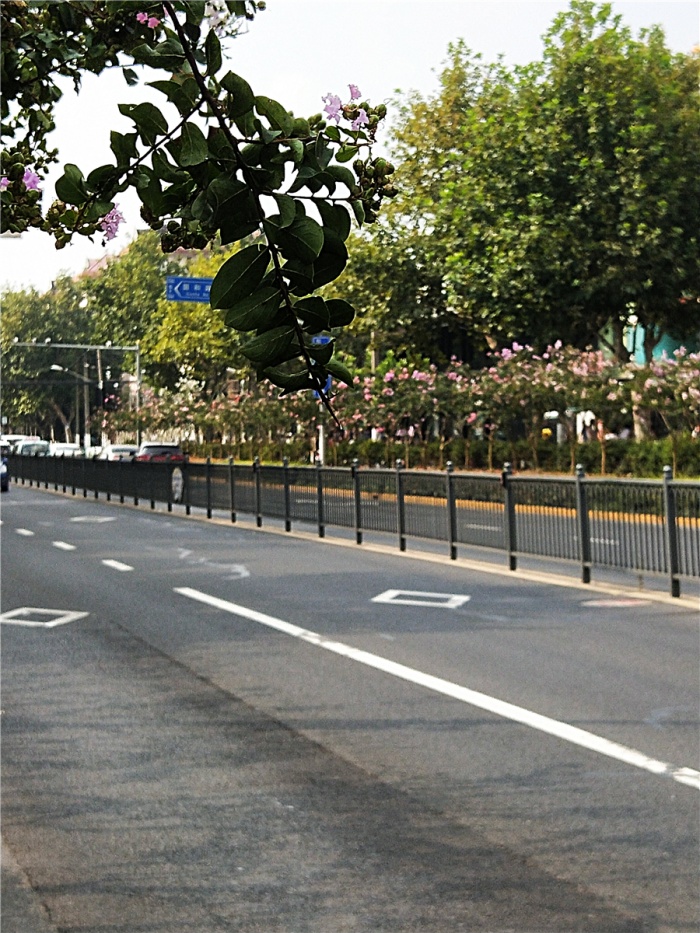 道路在机非隔离带上种美国丛生紫薇、下植常绿萱草,辅以染井吉野樱,营造了丰富的春夏观花绿化特色景观。最佳观赏期为3月、7~9月。