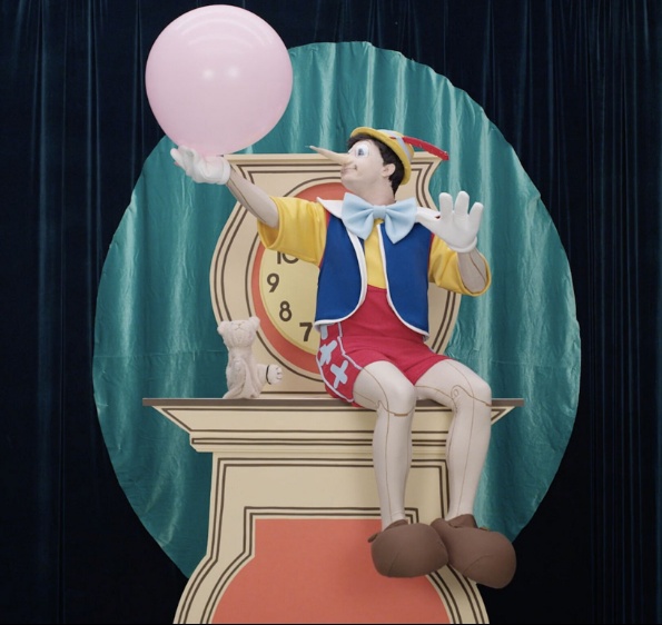 艺术家本人也是表演者之一,他变身为各类卡通人物和标志性角色,比如粉红豹、兔八哥、大力水手、匹诺曹……甚至是白雪公主的恶毒后妈和自由女神。