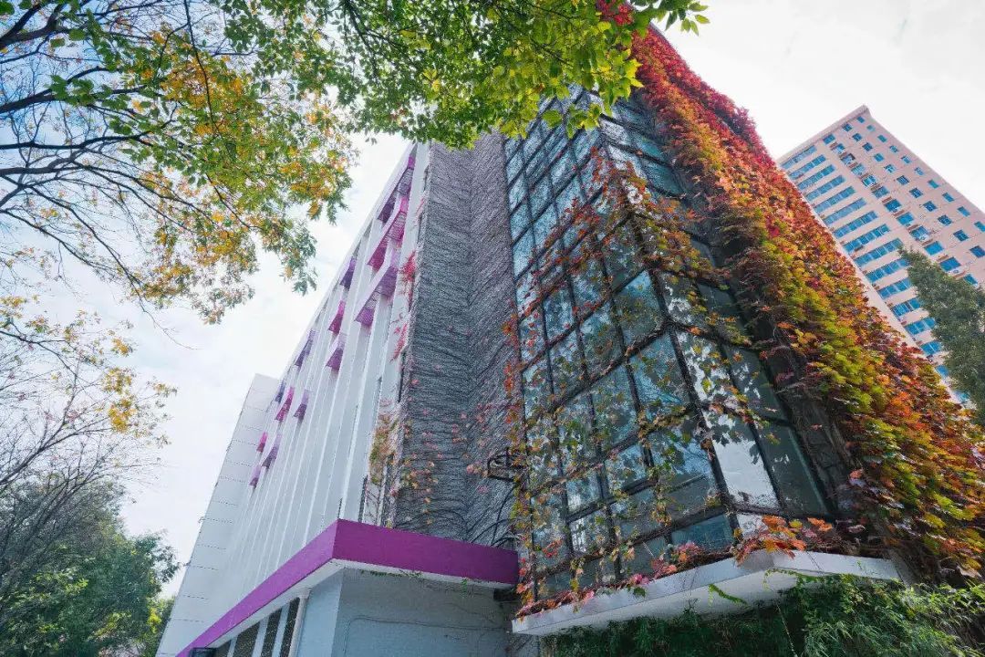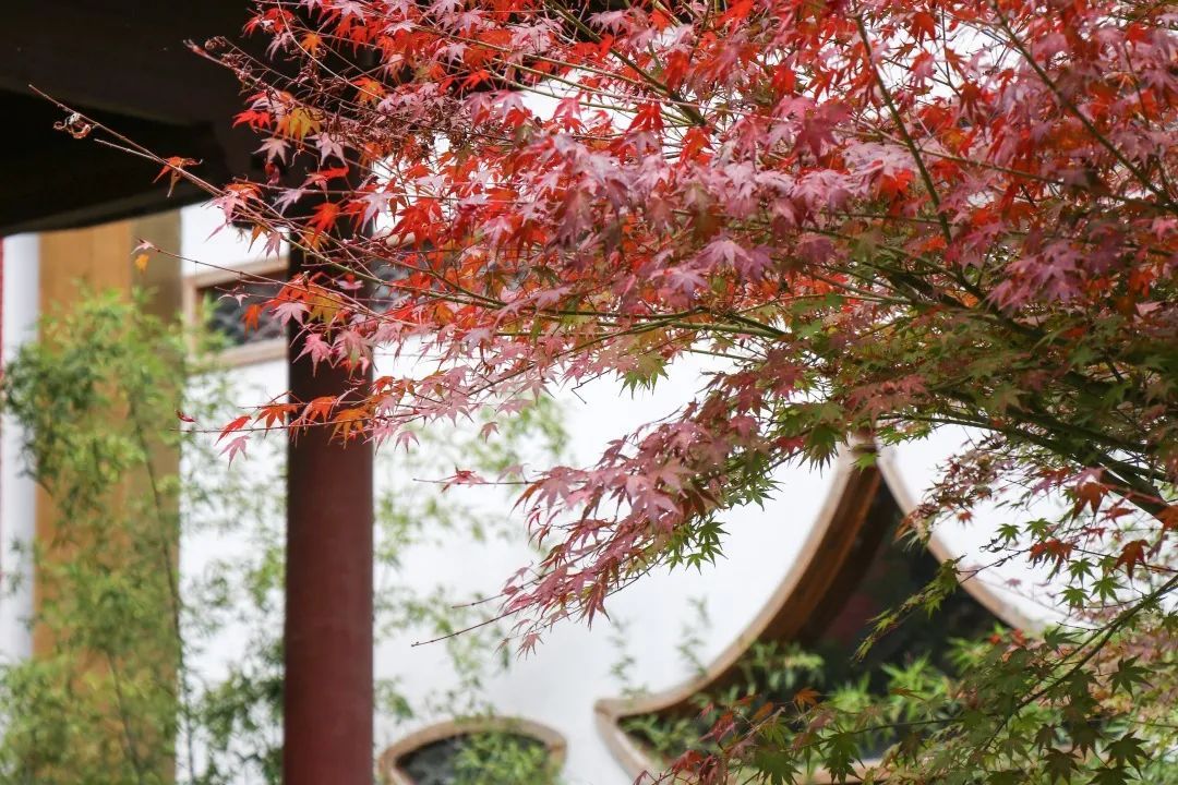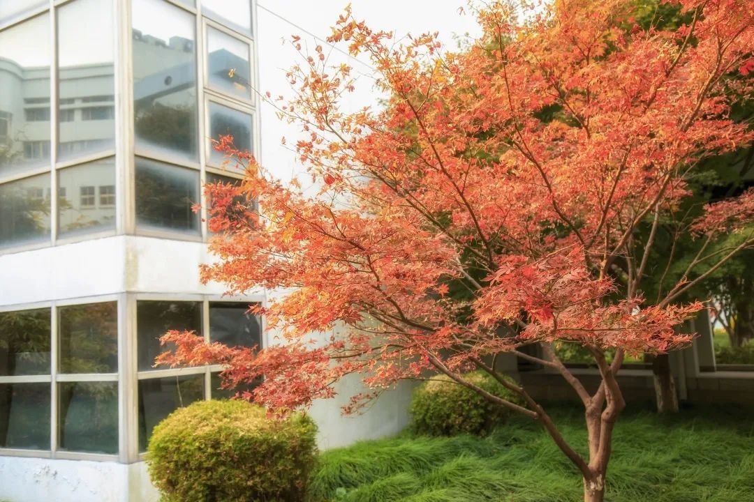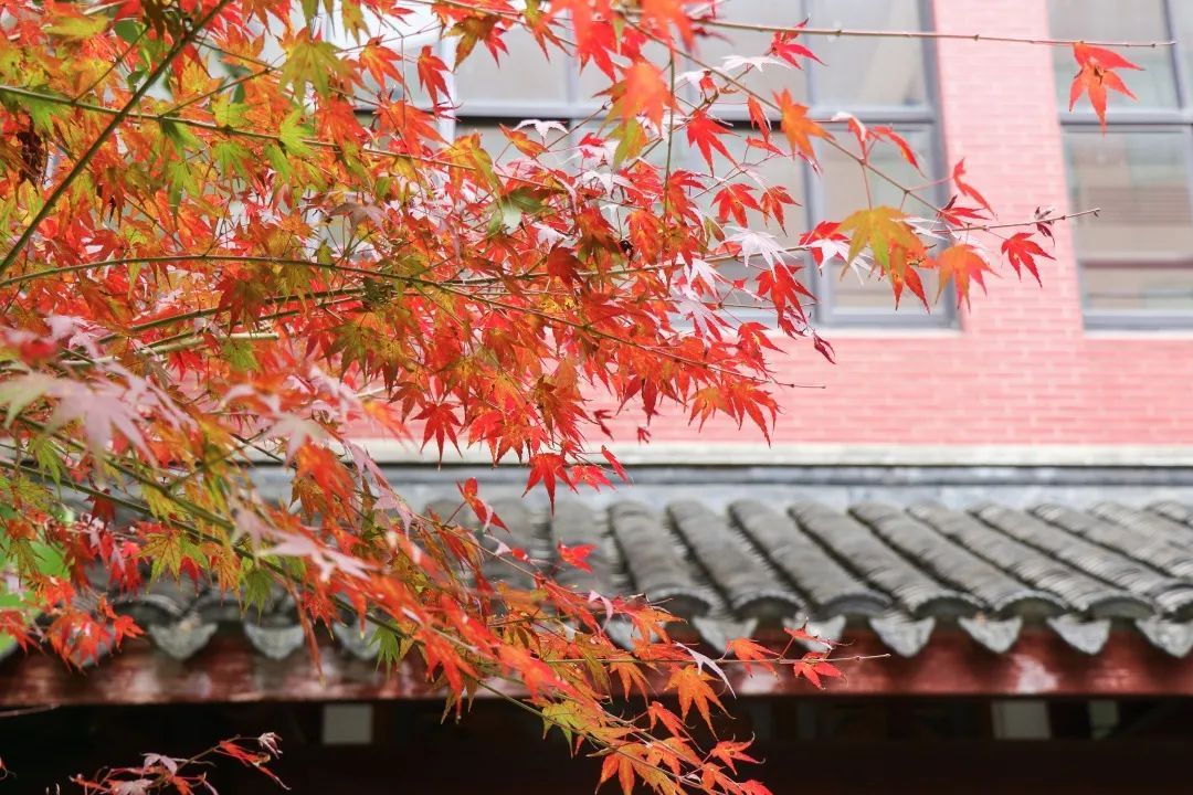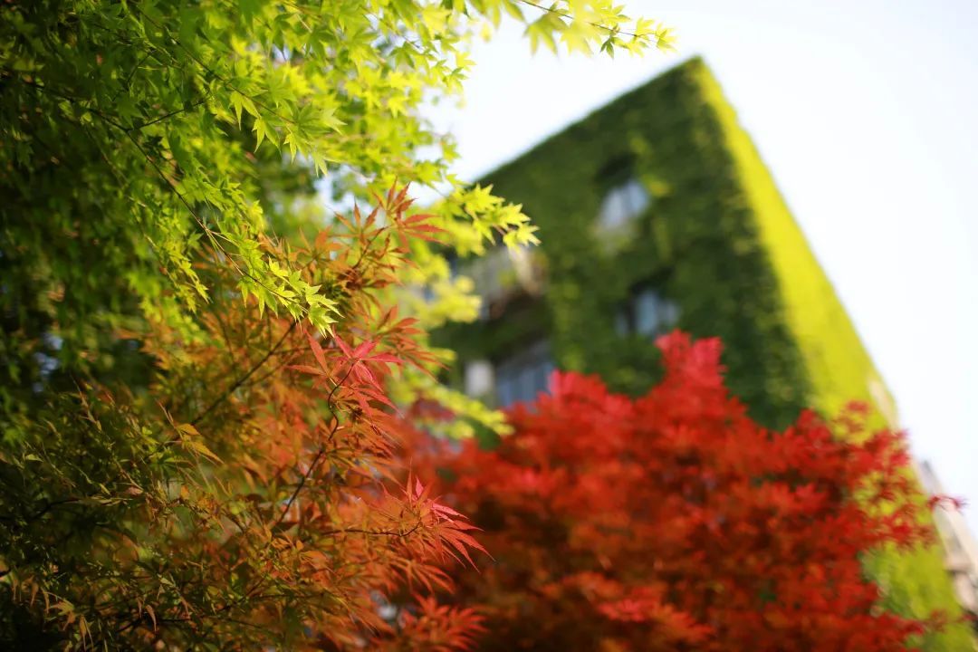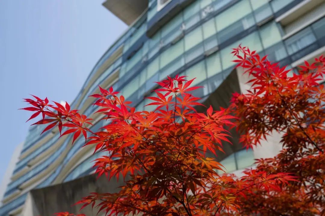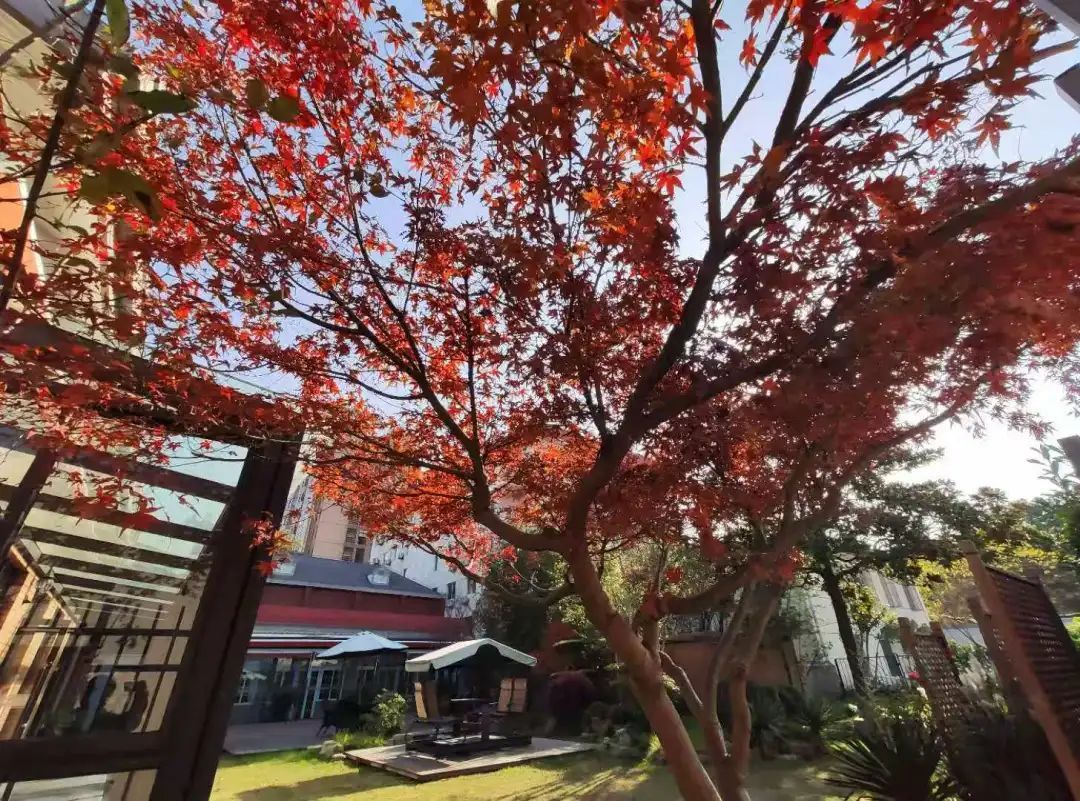 枫叶流丹,绚烂金秋。上海工艺美术职业学院嘉定校区原创中心中庭花园赏枫进行时!
